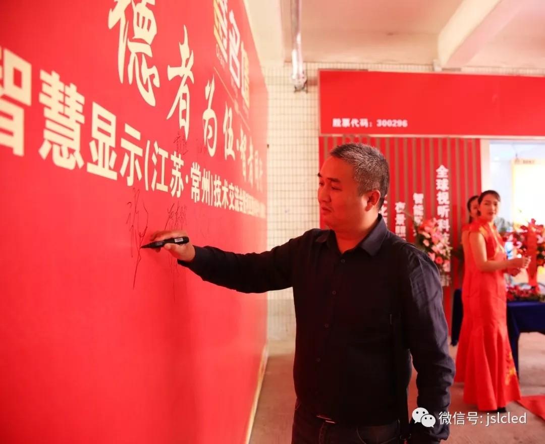 Jiangsu Liangcai electronics co., LTD., general manager of chapter nine yu, Mr DE channel center, vice general manager Mr. Wu, this group (stock code: 603680) chairman of the board YuJinKun and ms Han Hongwei, vice chairman of changzhou federation of industry and commerce on stage together for celebration and opening ceremony.