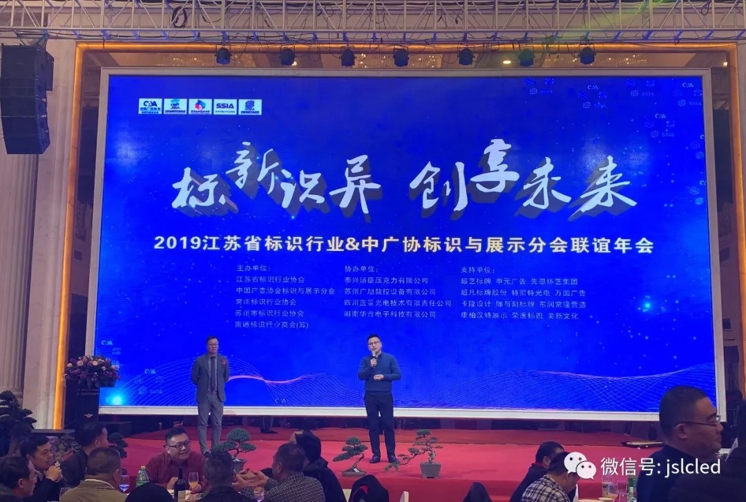 2019年11月28日,感恩節(jié)的當(dāng)天,在南通普天同慶大酒店隆重舉辦了江蘇標(biāo)識行業(yè)&中廣標(biāo)識與展示分會聯(lián)誼年會。由江蘇省標(biāo)識行業(yè)協(xié)會、中國廣告協(xié)會標(biāo)識與廣告分會、蘇州市標(biāo)識行業(yè)協(xié)會、常州標(biāo)識行業(yè)協(xié)會、南通市標(biāo)識行業(yè)協(xié)會(籌)聯(lián)合主辦,是整個江蘇省標(biāo)識人的盛會。