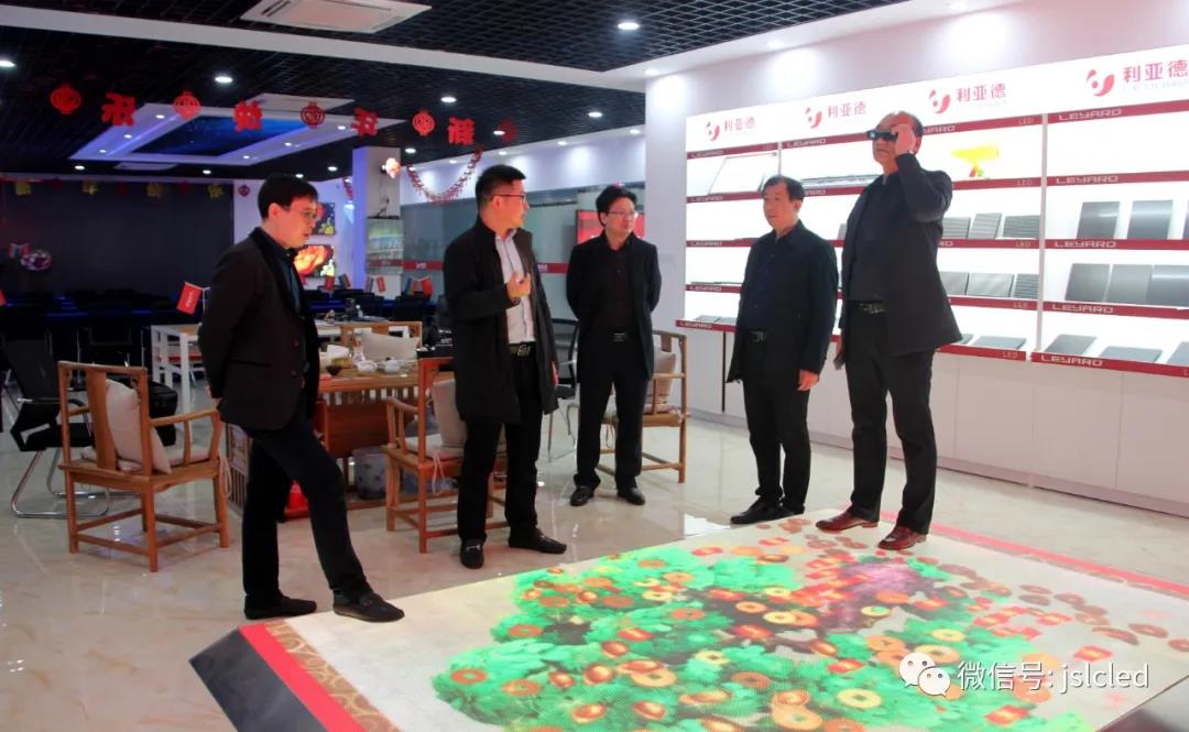 各領(lǐng)導(dǎo)一行首先來到利亞德(江蘇·常州)展廳參觀了LED顯示、照明產(chǎn)品,章總介紹了特色產(chǎn)品,如透明屏、城市景觀亮化、文旅、智慧城市建設(shè)(智慧燈桿)等,包含多類不同的應(yīng)用場景。領(lǐng)導(dǎo)們親身體驗了3D顯示屏和地磚互動屏,對此贊賞有加 。